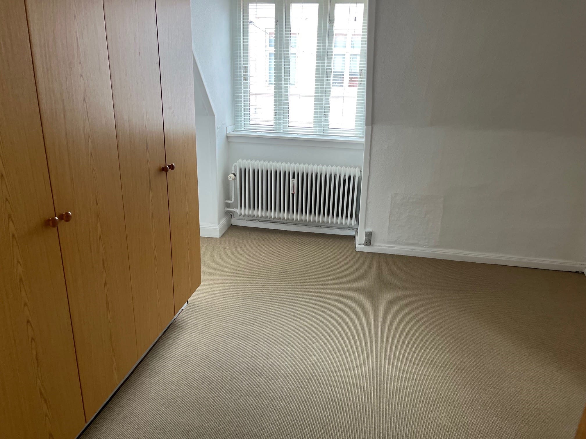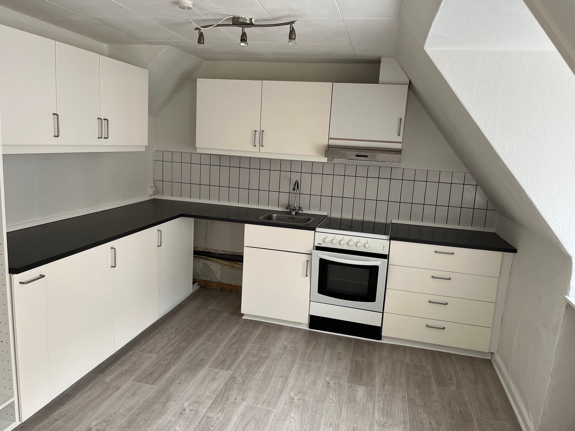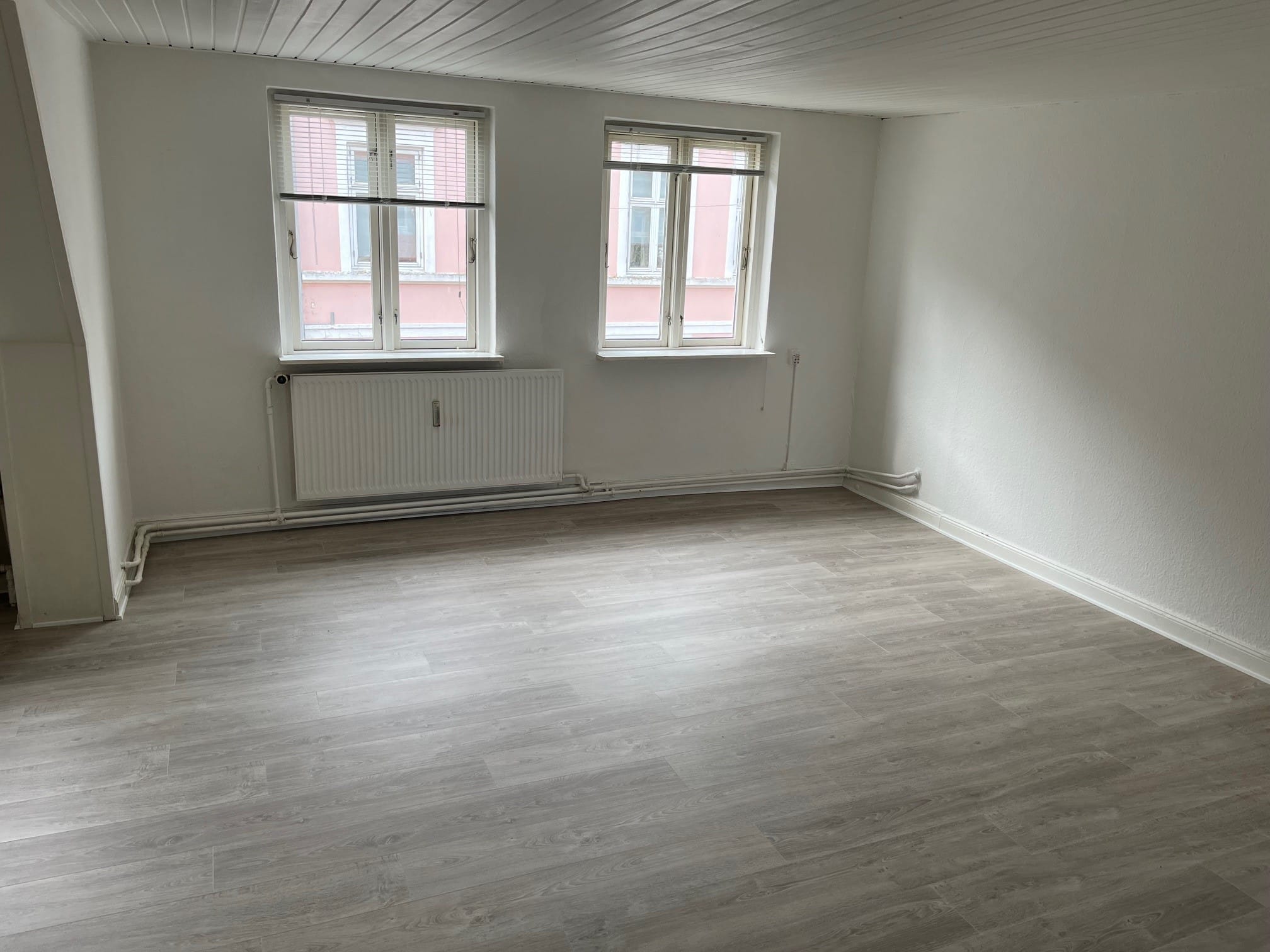 Stor førstesalslejlighed i to plan, beliggende meget centralt i Maribo. Indeholder: Entre/spisestue. Køkken med hvide elementer. Stue i to niveauer, med brændeovn og udgang til altan. Soveværelse. Badeværelse med brusekabine. 2. sal indeholder gennemgangsværelse samt værelse. Trægulve og gulvtæpper i værelser. Brugsret til have og udhus. Opvarmes med fjernvarme. Husdyr ikke tilladt.